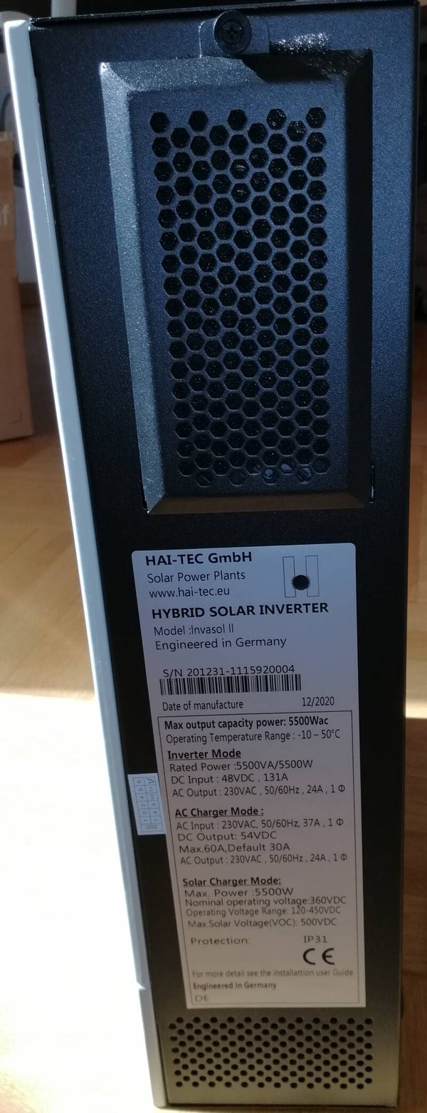 ist ein Hybrid-Solarwechselrichter der neuesten Serie der HAI-TEC GmbH. Der Invasol Wechselrichter ist in zwei Leistungen von 3,2 kW oder 5,5 kW erhältlich. Es kann mit oder ohne Energiespeicher betrieben werden.